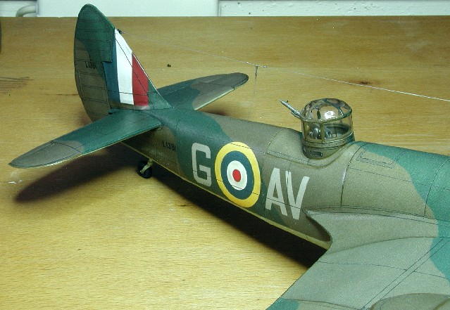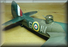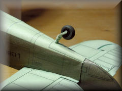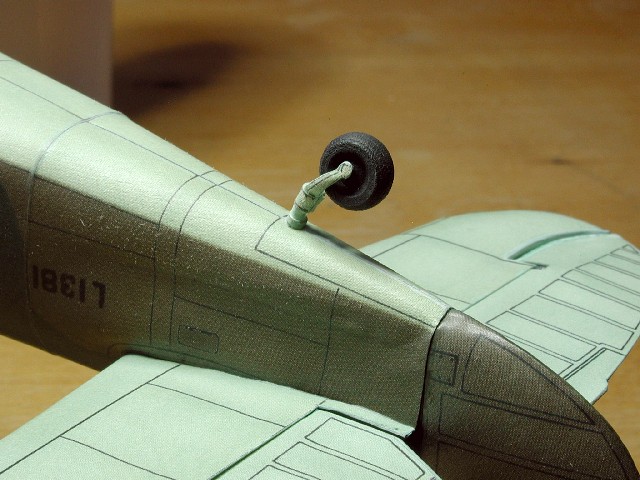 The cockpit glazing was self-made, by heat-forming some transparent plastic material over the original paper cockpit, which was built and then filled with synthetic resin filling compound. The wheels are the wooden ones from Gomix.