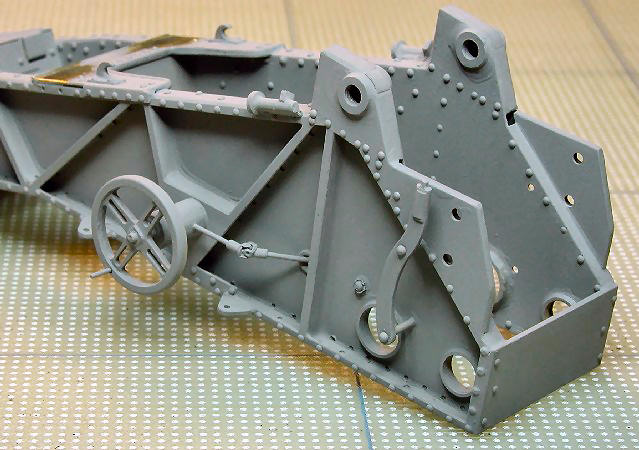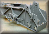 Continuing now with the model, it is time to add components to the main carriage frame and finish the wheels.
