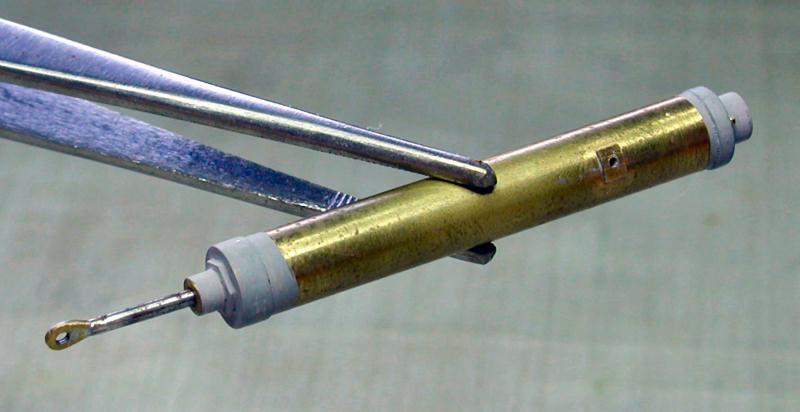 Tip: To form a very straight piece of wire, fasten one end in a vise and pull the other end with a pair of pliers and restrained force. The wire will become a little bit longer, but also very straight. Cut and trim it to size it with a little cutting-off wheel (Proxxon, Dremel, etc.) and you get a perfect axle. Using some special flux, it is also possible to soft solder it with brass or something else.